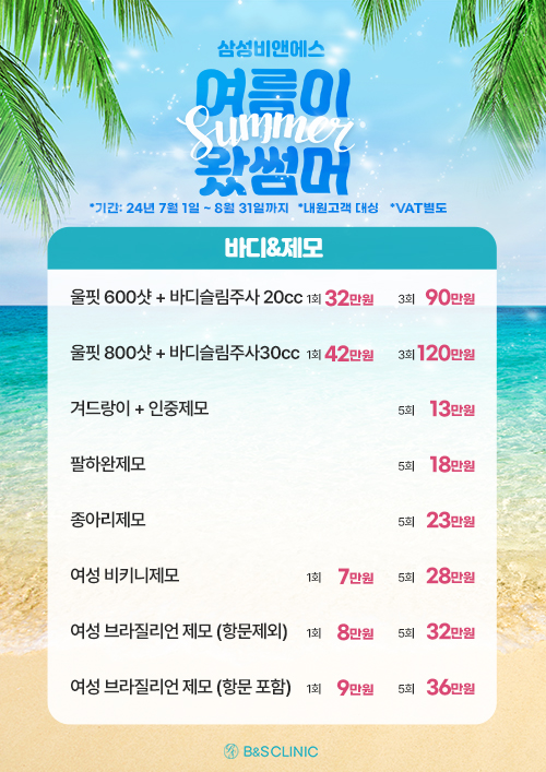 종료 8월 이벤트 안내 페이지 정보 작성자최고관리자 작성일24-03-29 14:57 조회1,765회 댓글0건 이전글 1회 체험 이벤트 다음글 3월 혜택 만나 봄! 목록 본문 8월 이벤트 안내 댓글 목록 등록된 댓글이 없습니다. 댓글등록 이전글 1회 체험 이벤트 다음글 3월 혜택 만나 봄! 목록